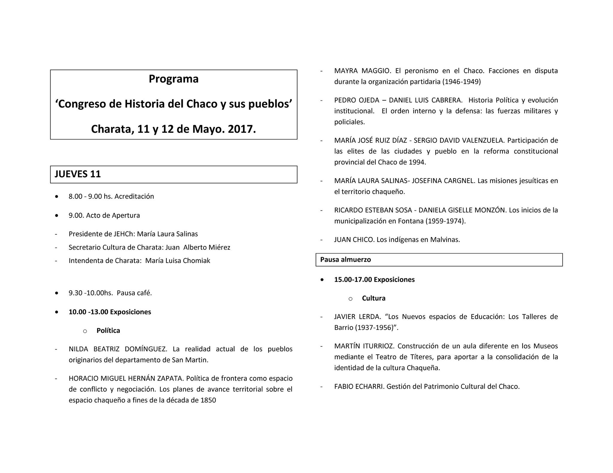La Junta de Estudios Históricos del Chaco inició en el año 2017 el Congreso de Historia del Chaco y sus pueblos.